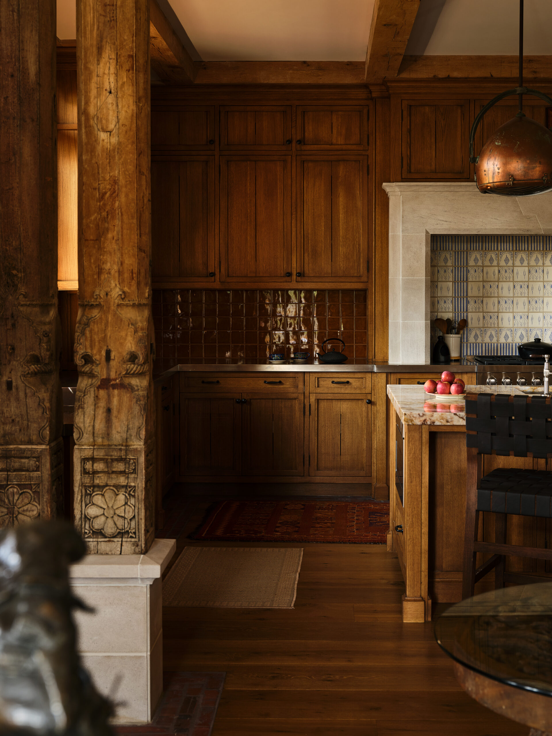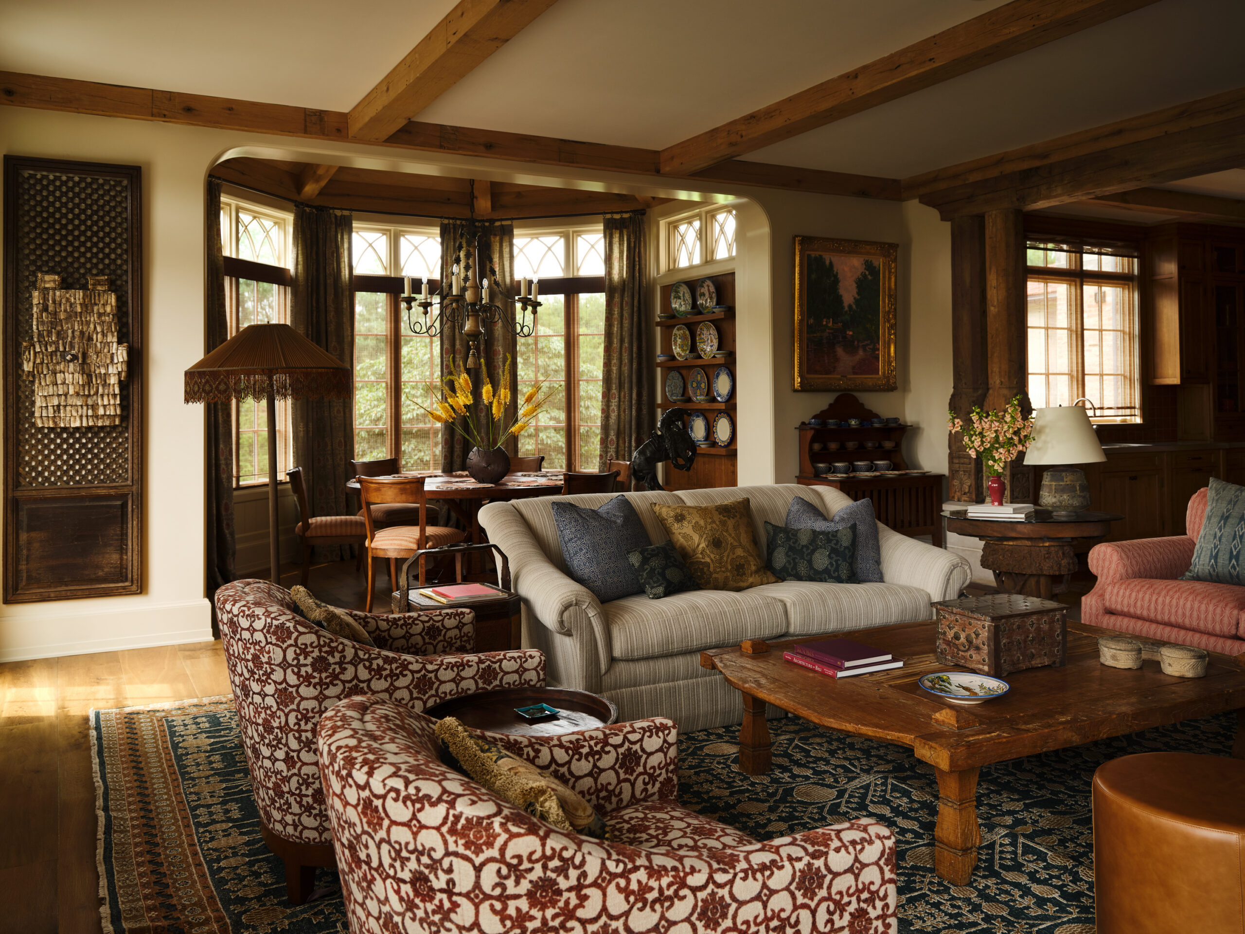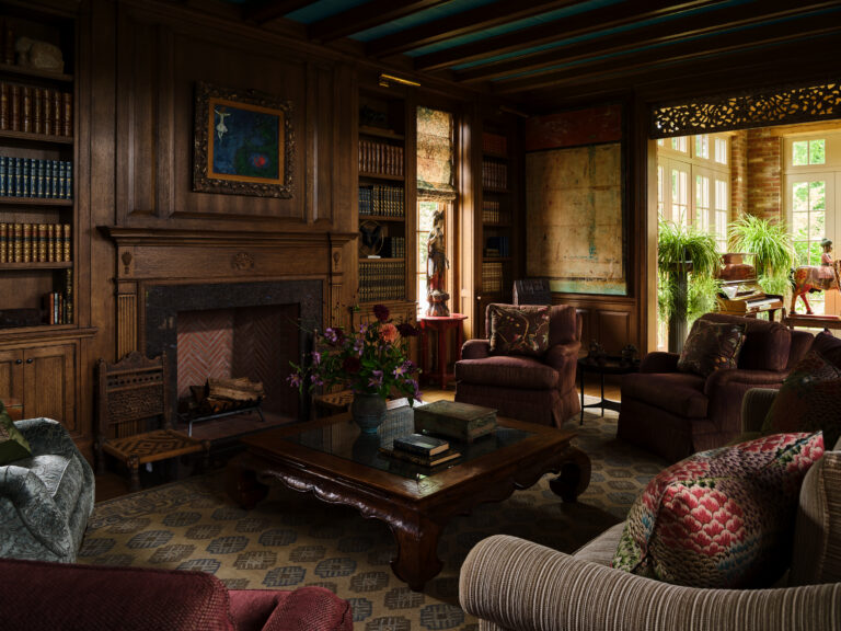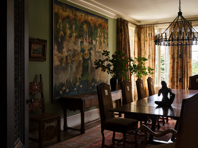 This ground-up English Tudor-style residence in Alpine reinterprets the classic countryside estate, inspired by the client’s family home originally designed by John Russell Pope. Multi-generational antiques, meticulous woodwork, rich materials, and historied fabrics are layered within traditionally articulated rooms, balancing historical grandeur with a fresh, livable sensibility. The home emerges as a story-drivenfamily estate that honors the past while establishing