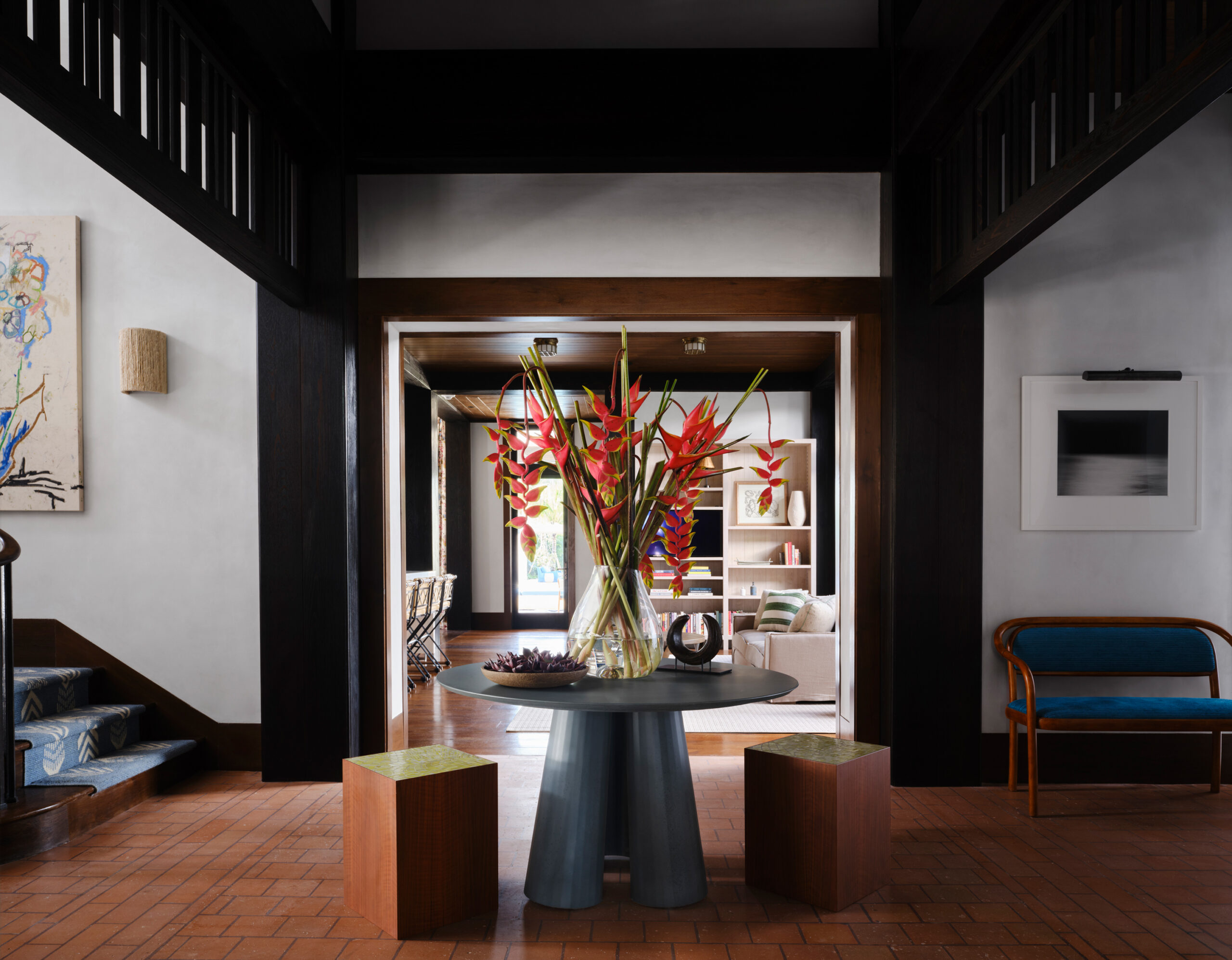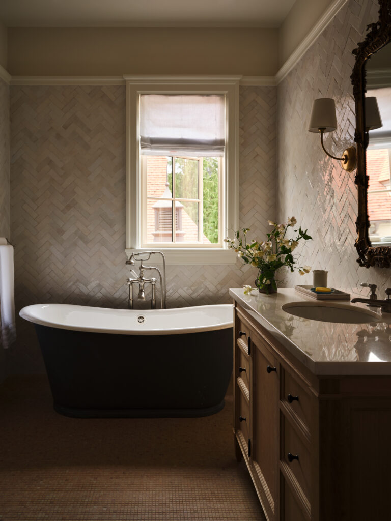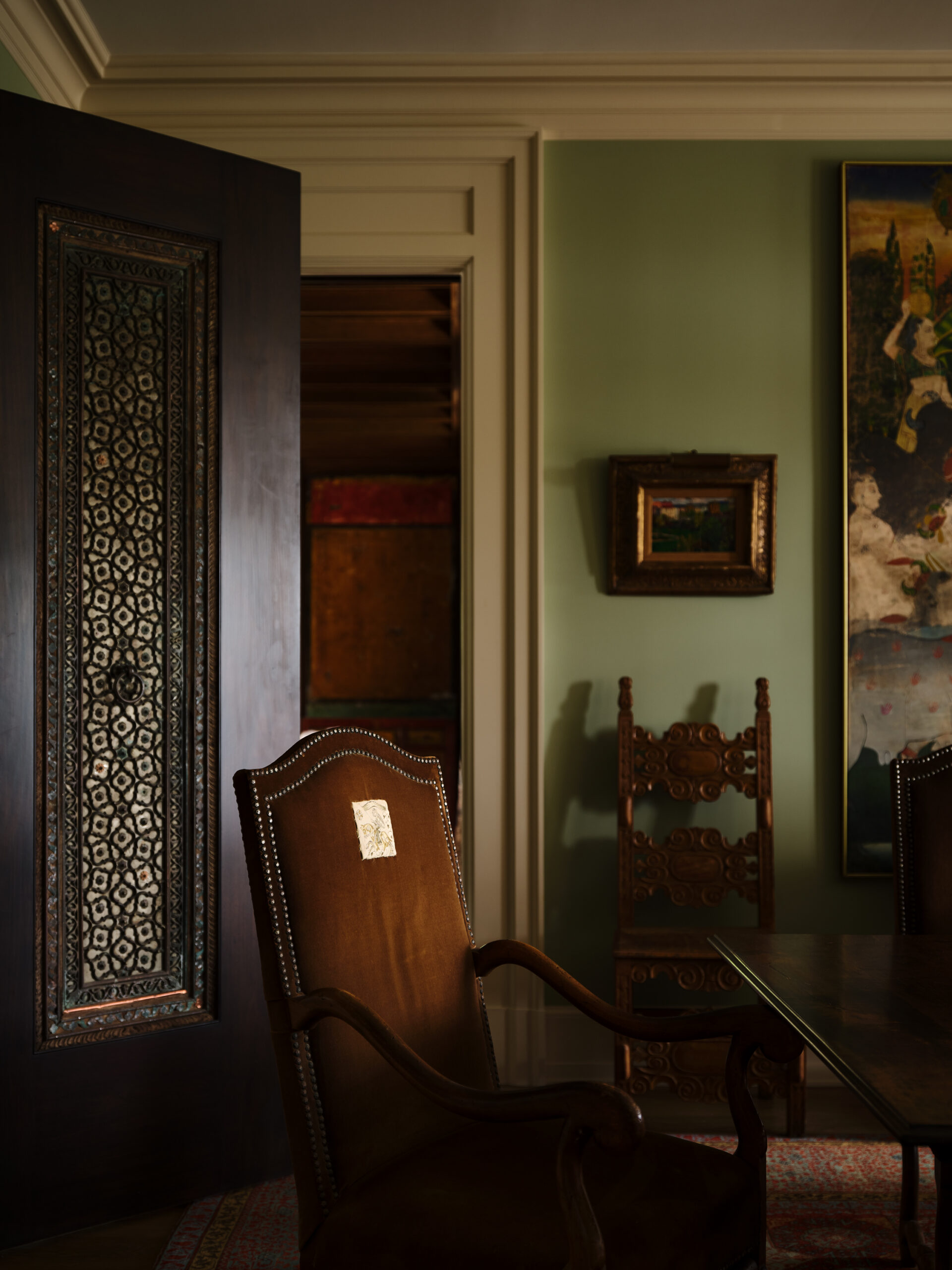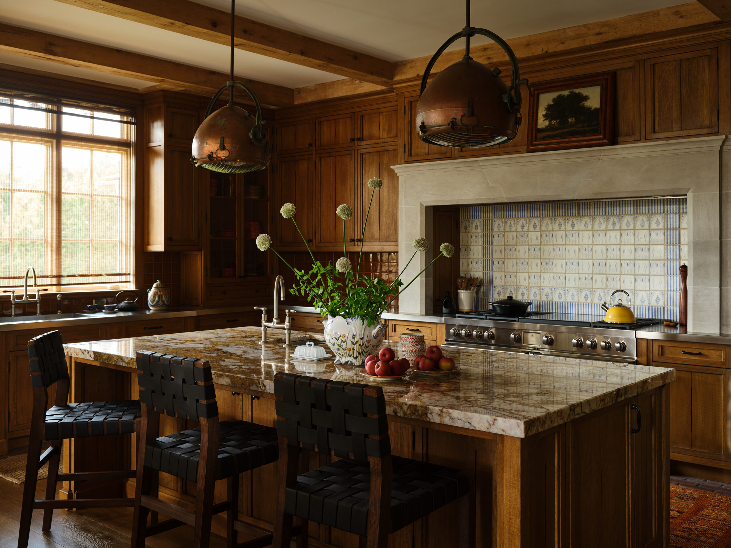 This ground-up English Tudor-style residence in Alpine reinterprets the classic countryside estate, inspired by the client’s family home originally designed by John Russell Pope. Multi-generational antiques, meticulous woodwork, rich materials, and historied fabrics are layered within traditionally articulated rooms, balancing historical grandeur with a fresh, livable sensibility. The home emerges as a story-drivenfamily estate that honors the past while establishing