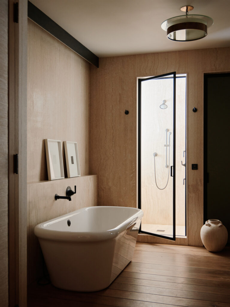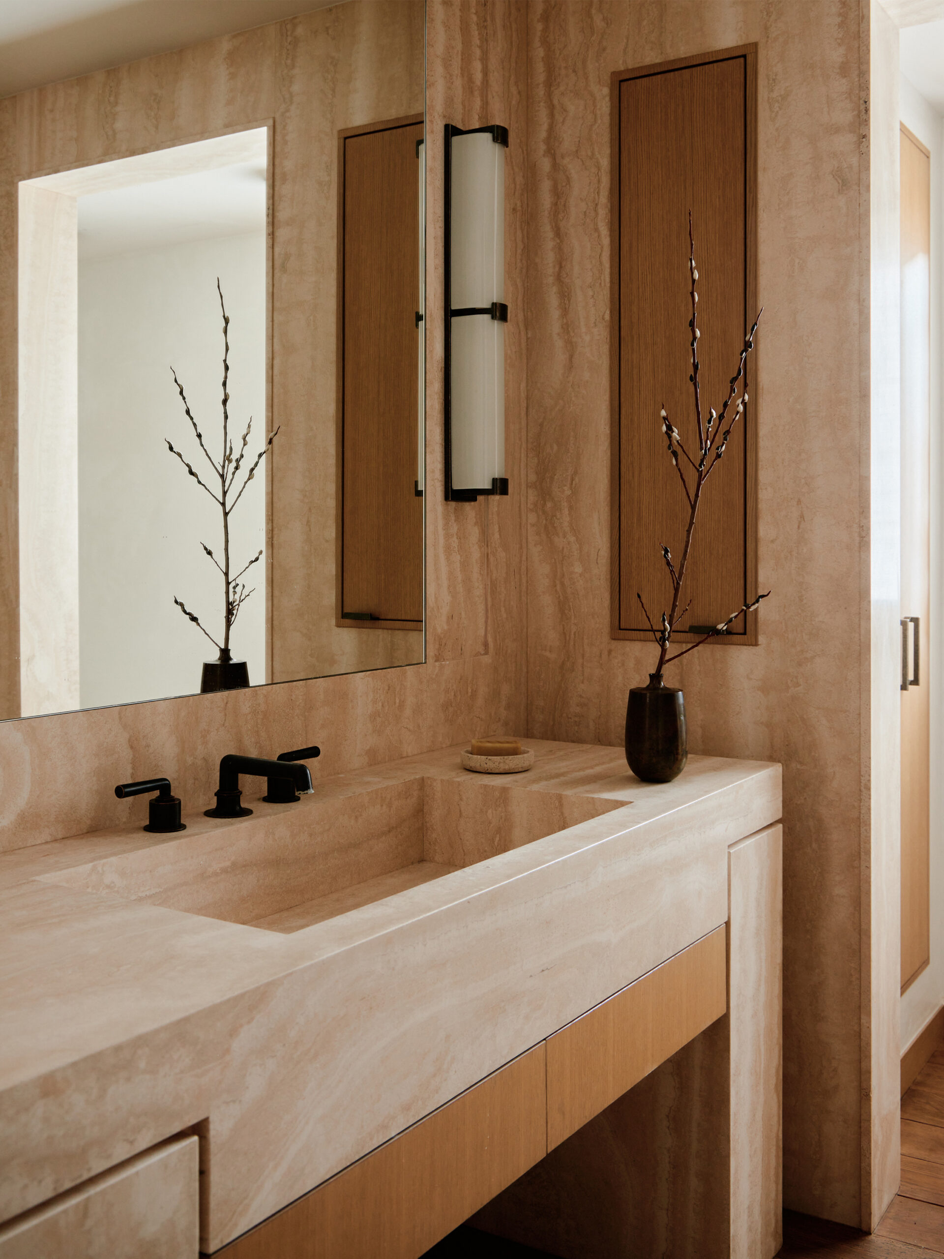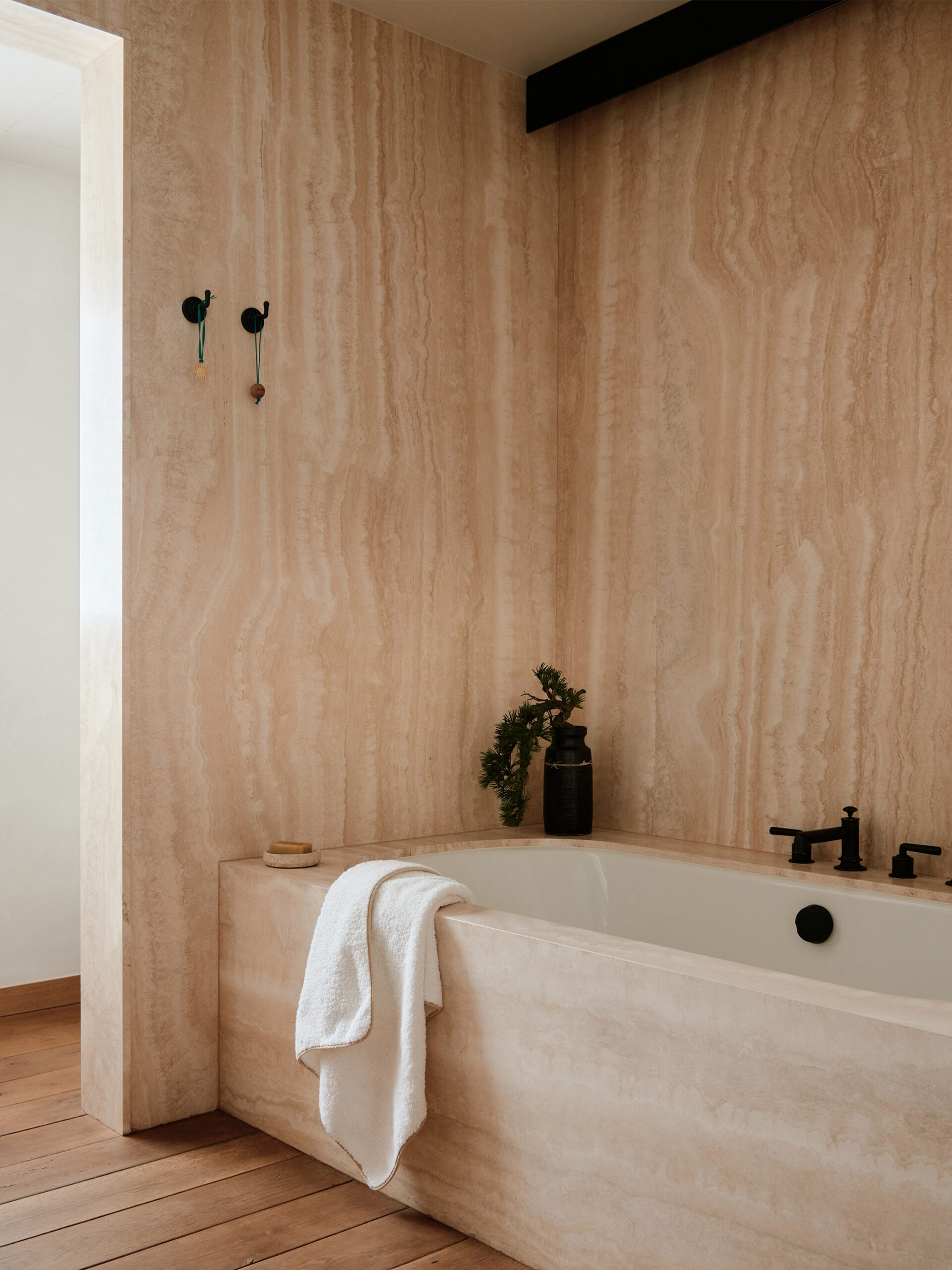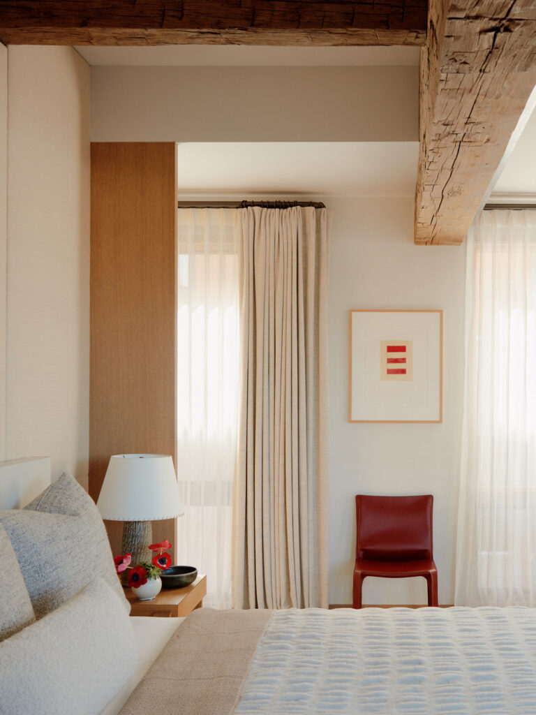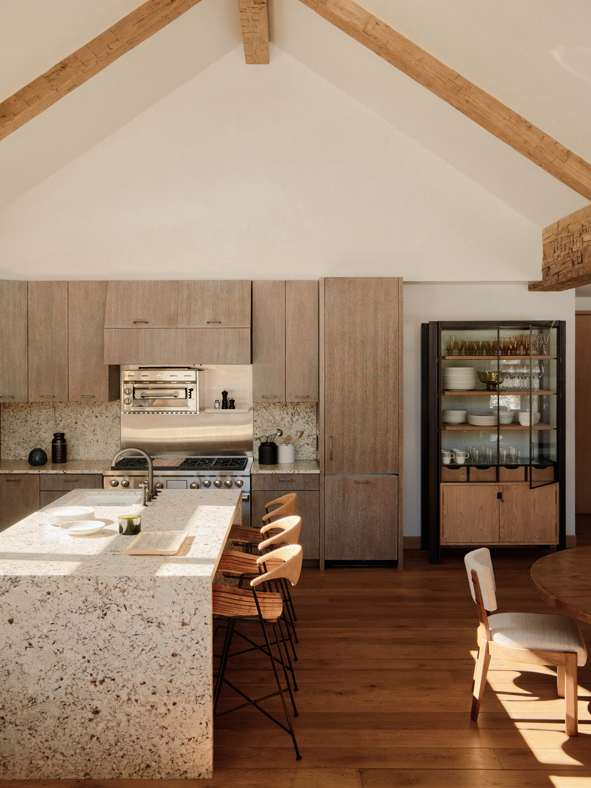 A richness of textures makes the connection between the comfort of home and the beauty of the surrounding landscapes in this Aspen townhome. Unique vintage furniture from a Paris flea market and custom-built pieces stand out against the backdrop of reclaimed barnwood, Colorado buff local stone, custom bronze metal work, and cashmere upholstered walls.