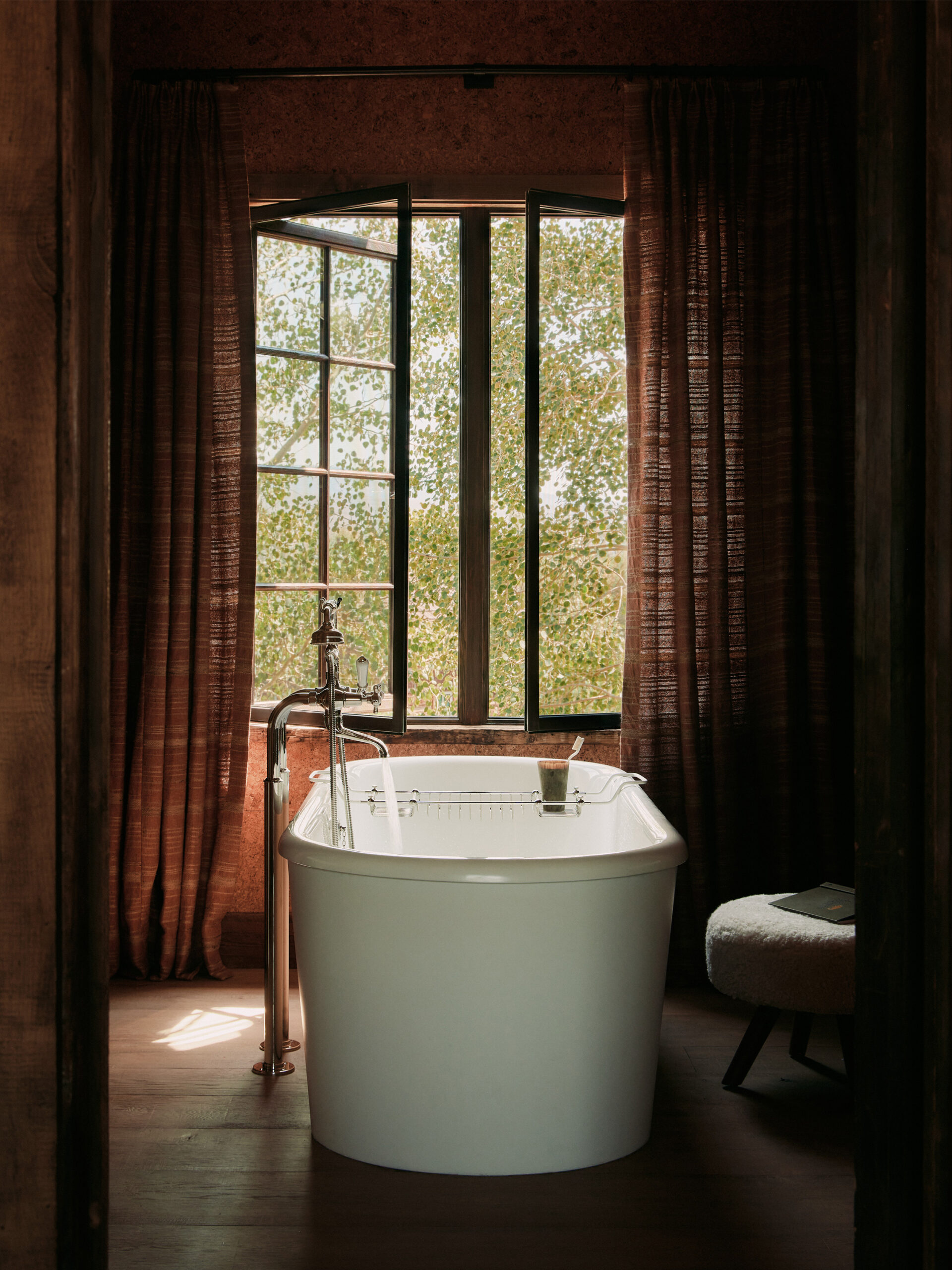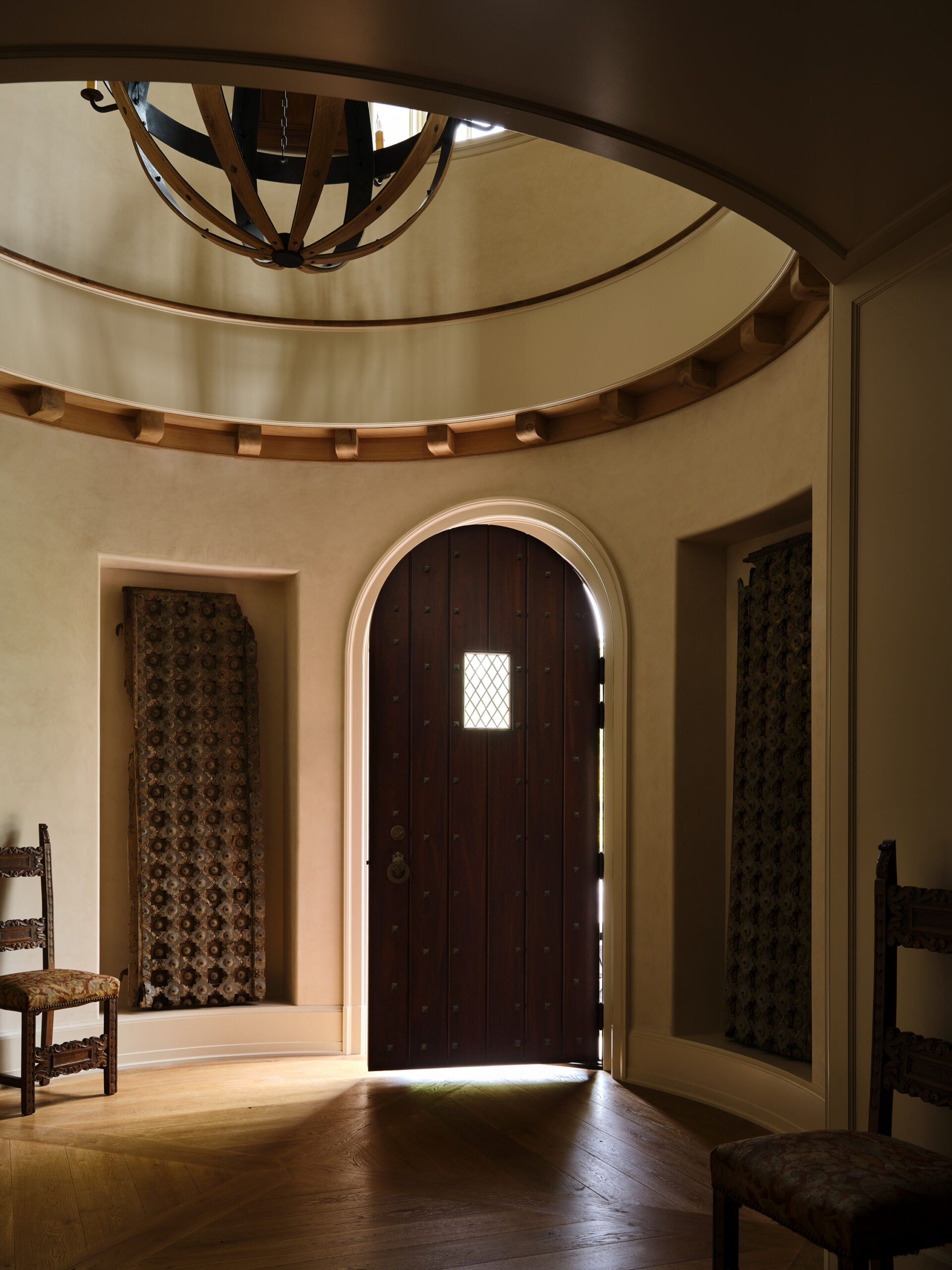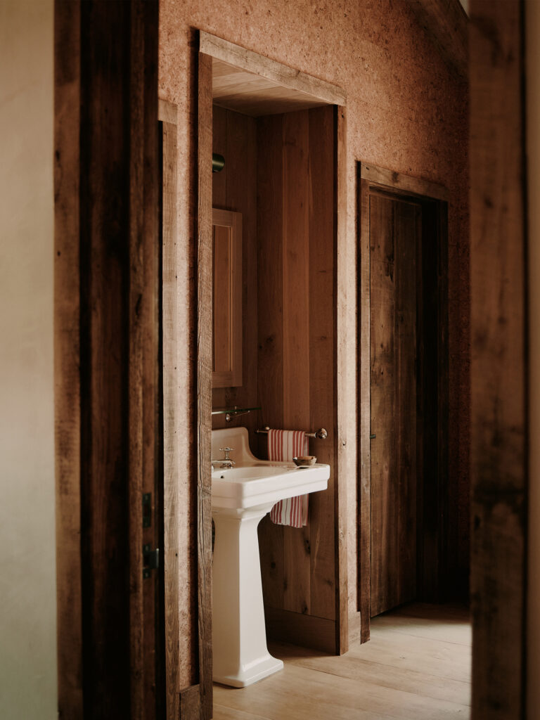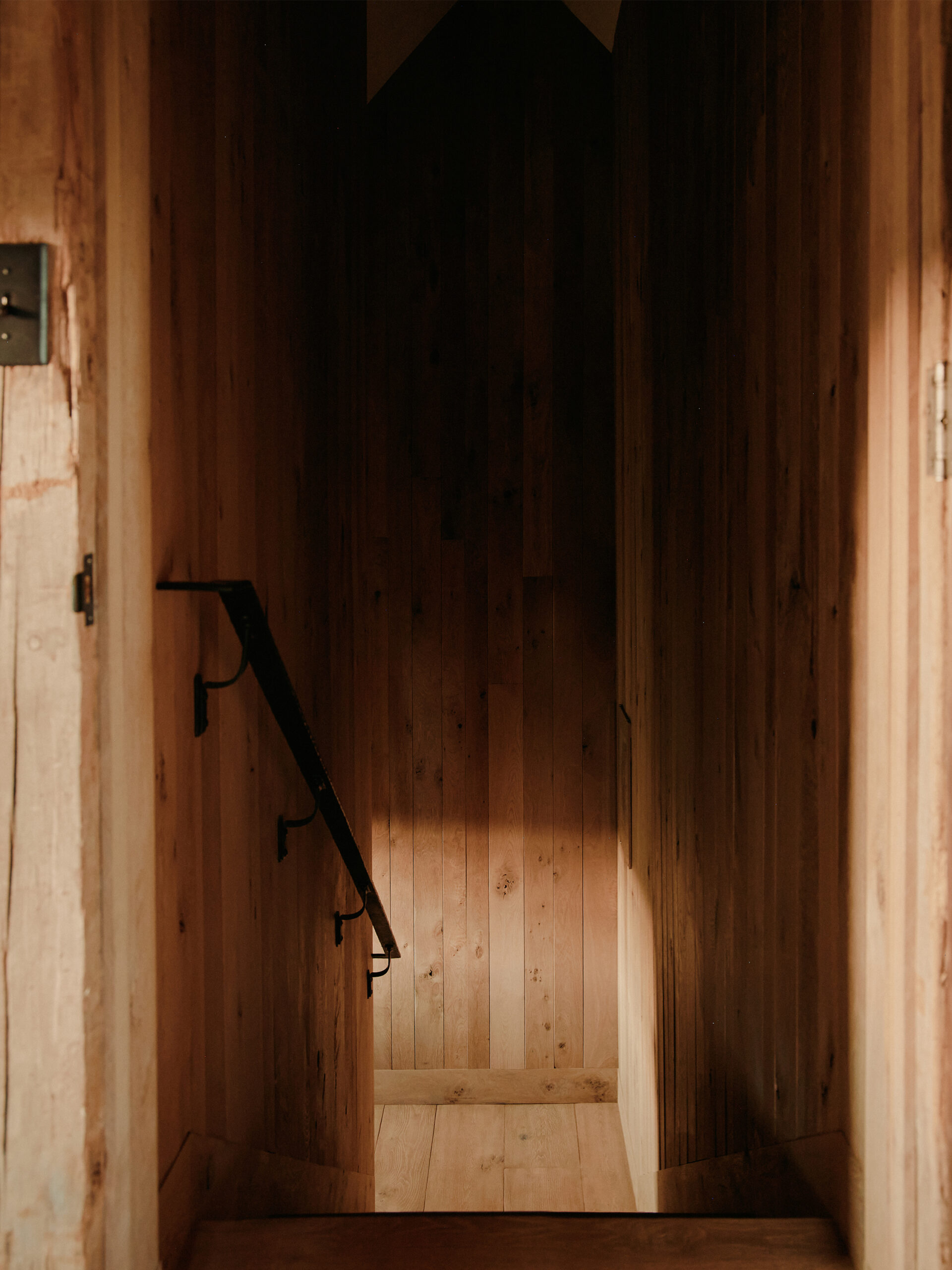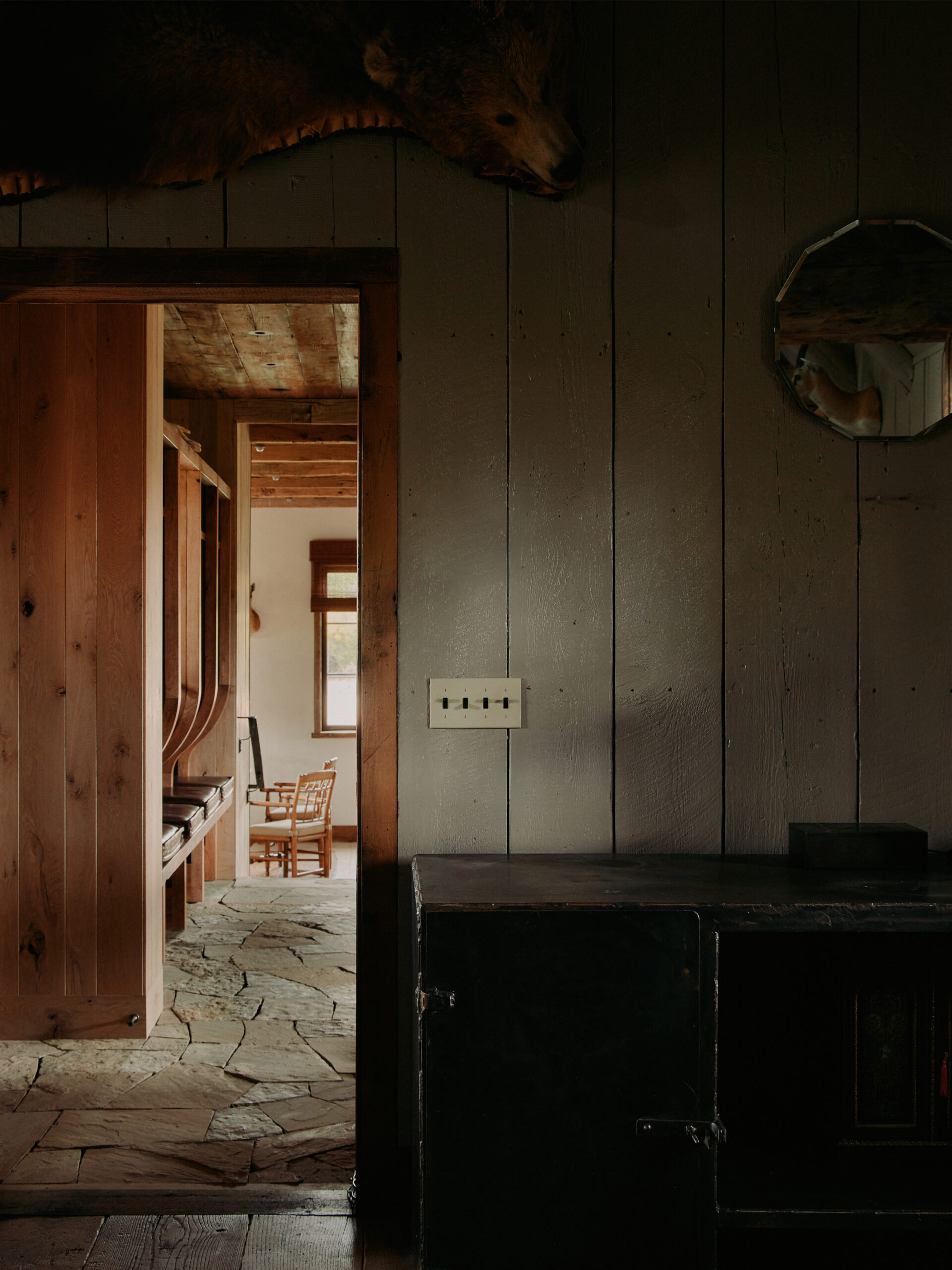 The double-height gabled ceiling of this residence's original structure was a starting point for our inspiration for creating this space that draws on the history and surrounding natural landscape of the place. Throughout the entire residence, there is a subtle appreciation of the landscape as you can catch glimpses of the shimmering meadows and towering mountains while surroundedby an interior palette evoking the changing seasons.