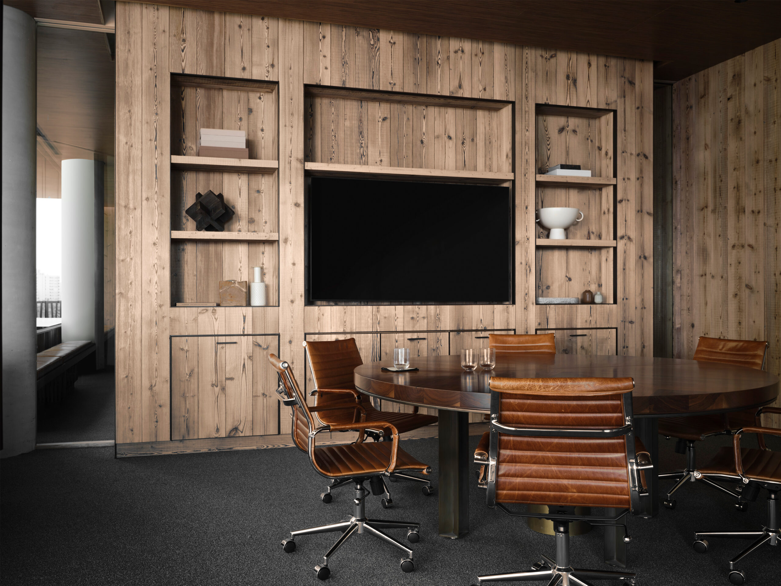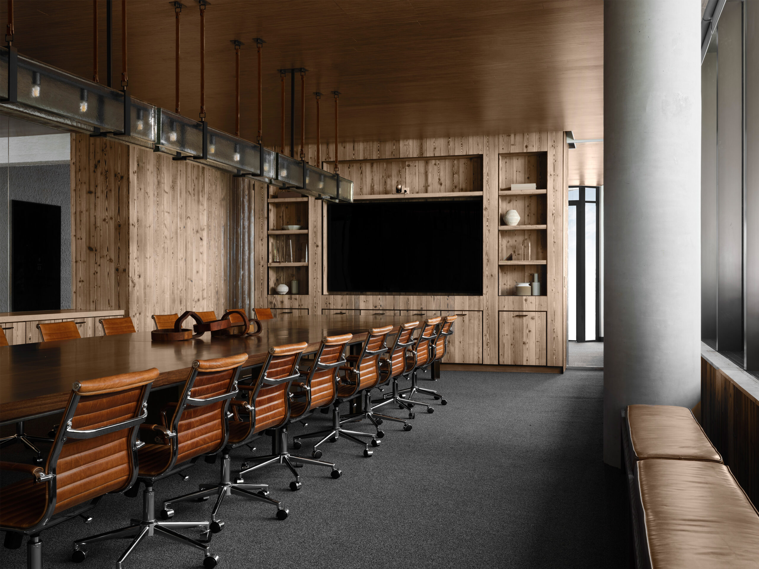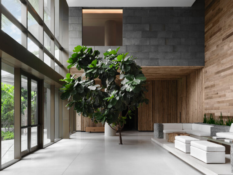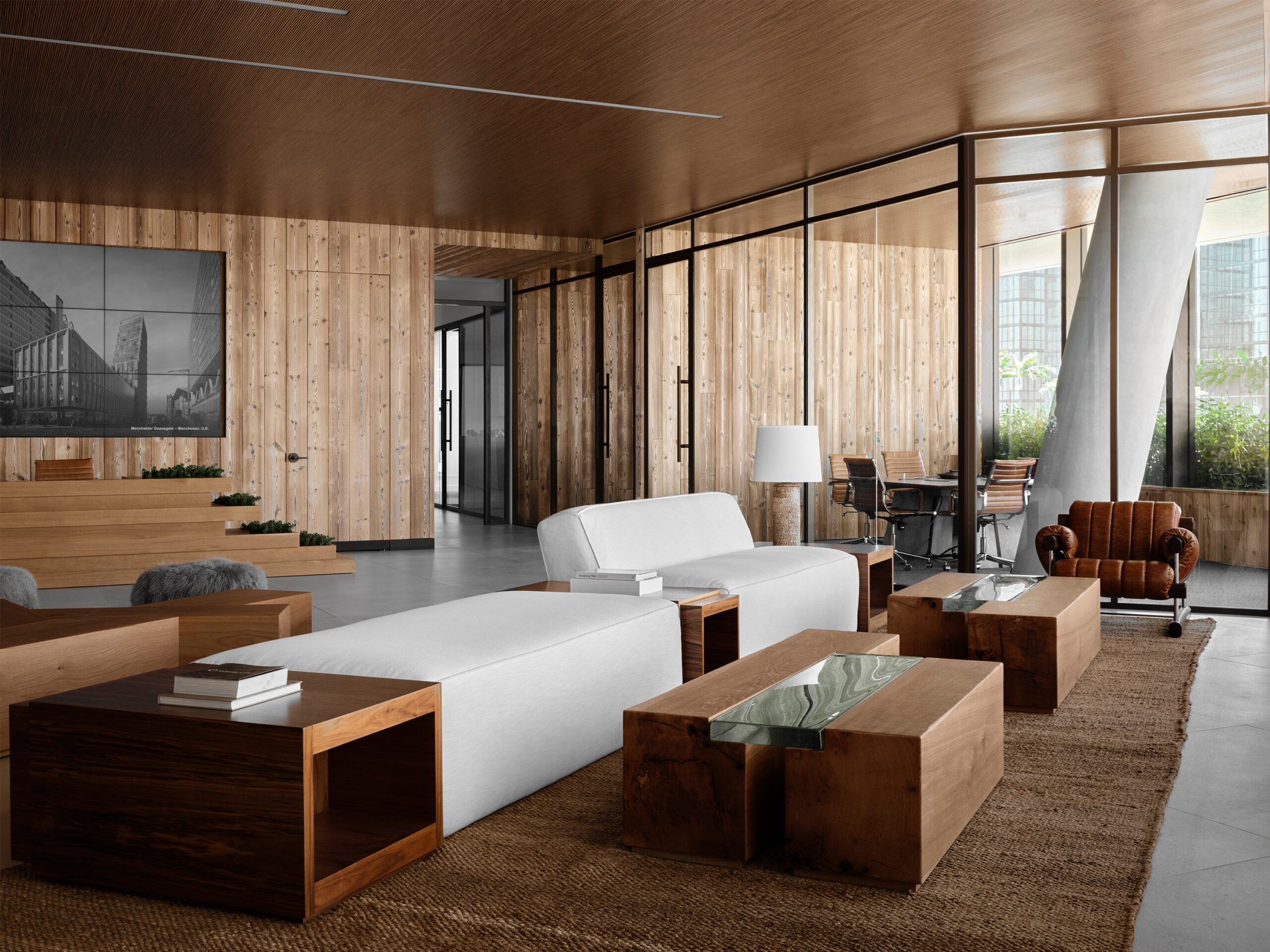For this Miami Beach office we combined natural materials usually associated more with residentialand rustic spaces with straight lines and clean surfaces to create a workspace that feels warm and comfortable while also feeling elevated and contemporary.