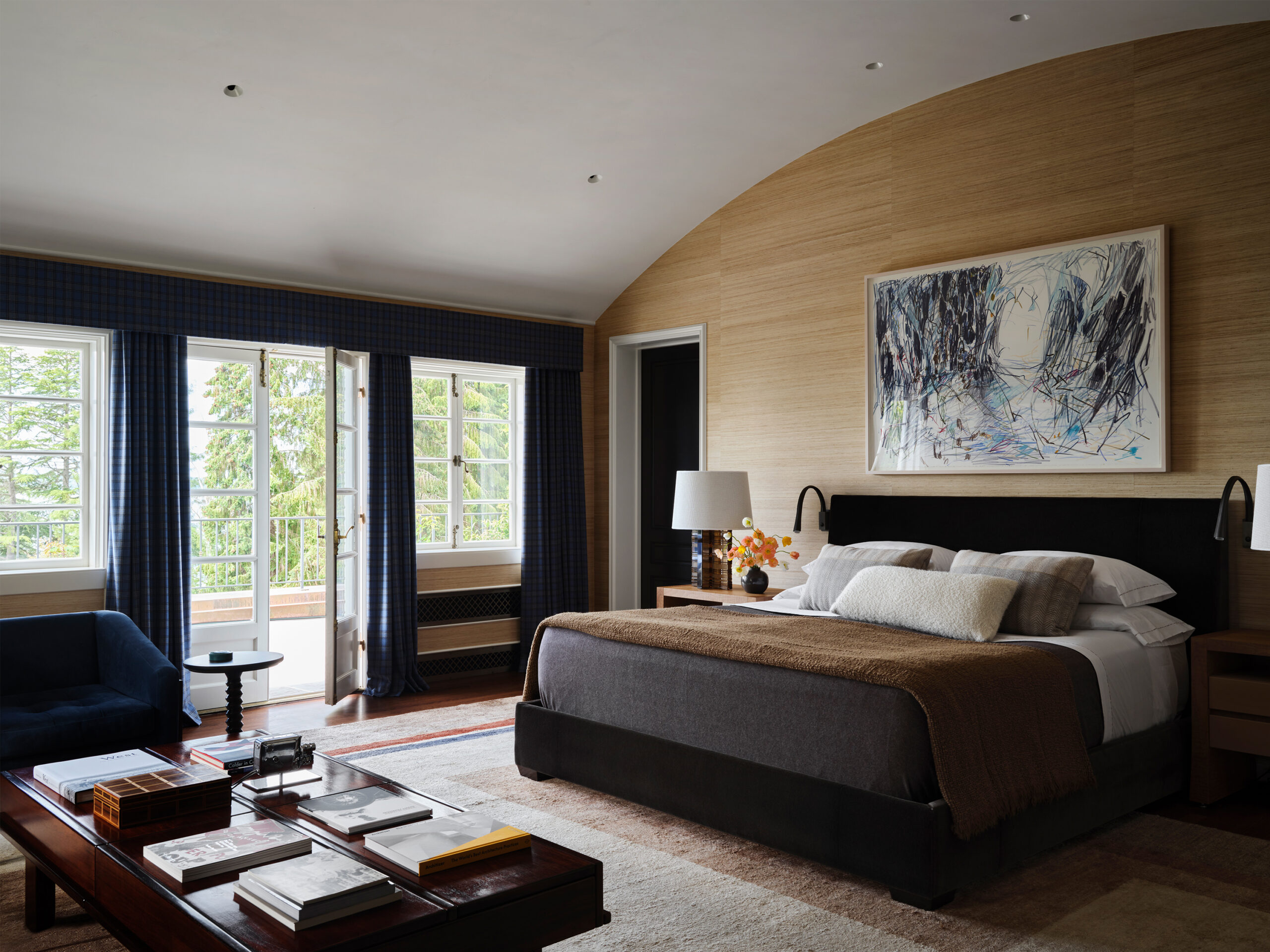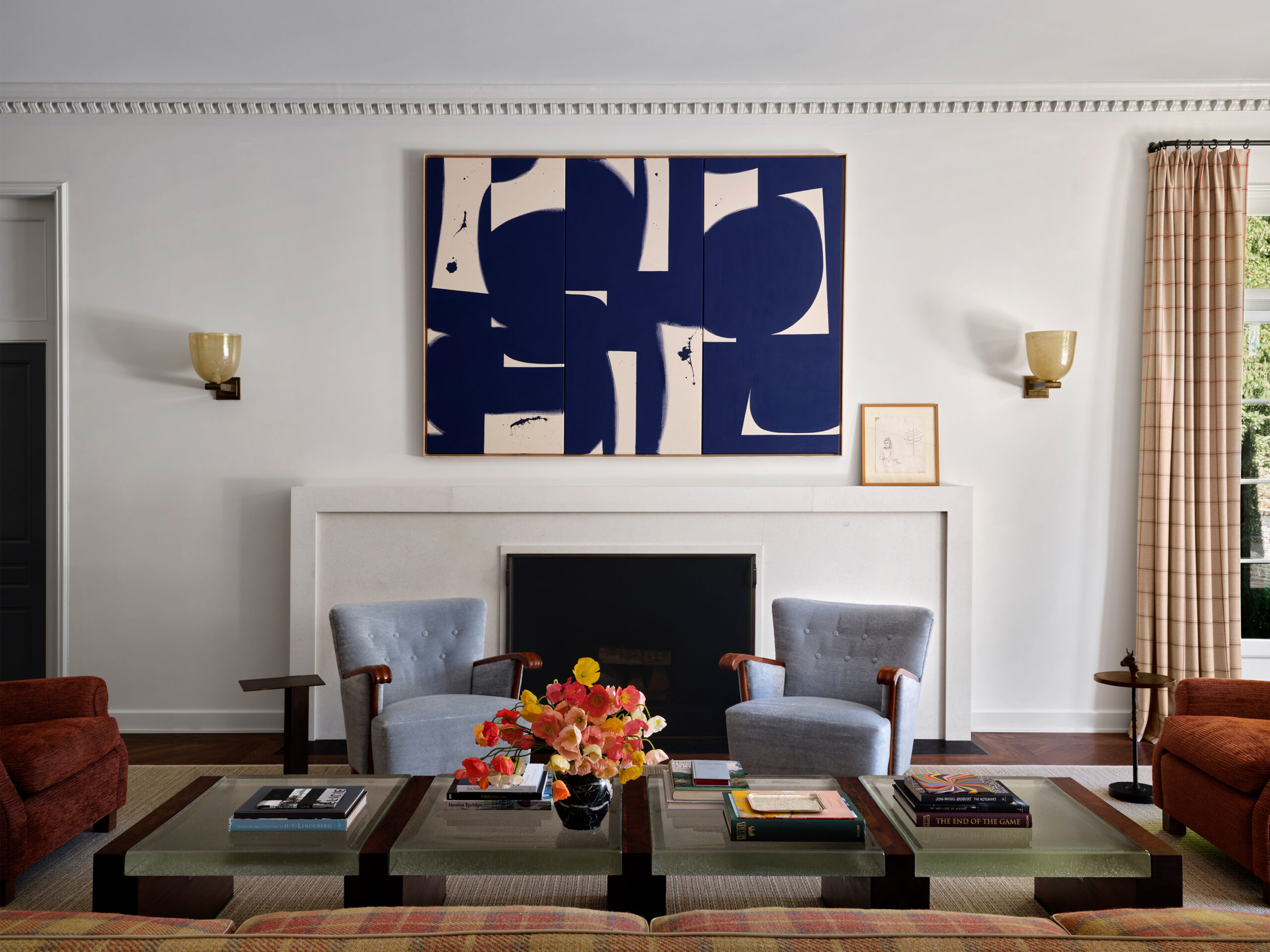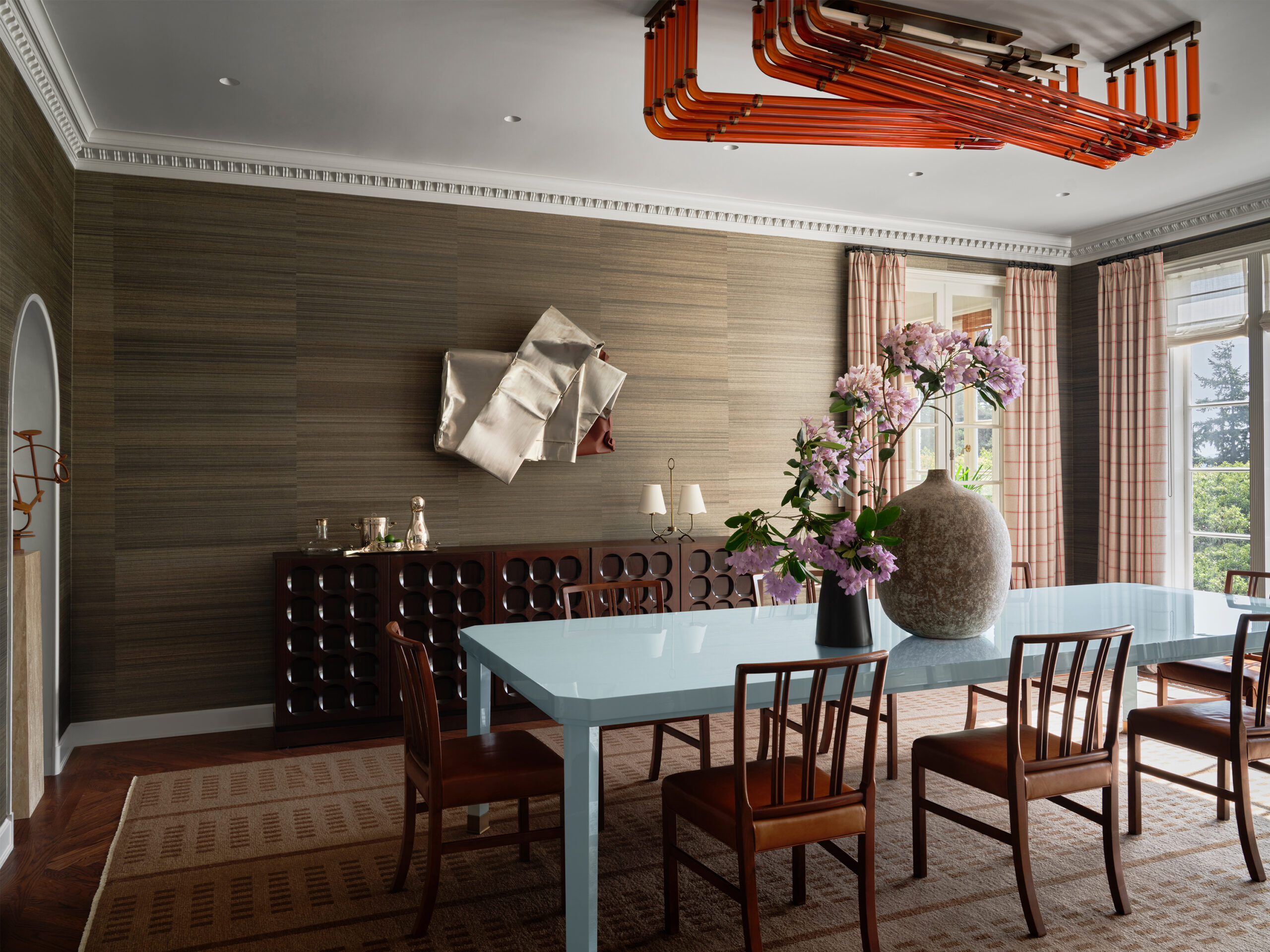 We renovated this historic two-acre Seattle estateoriginally designed by Harrie T. Lindeberg with ornamental gardens by the Olmsted Brothers by bringing together an eclectic mix of styles to play alongside the owners' extensive and vibrant art collection. Our design and curation creates a visually engaging and intentional space with elements ranging from a Brutalist-inspired mahogany sideboard