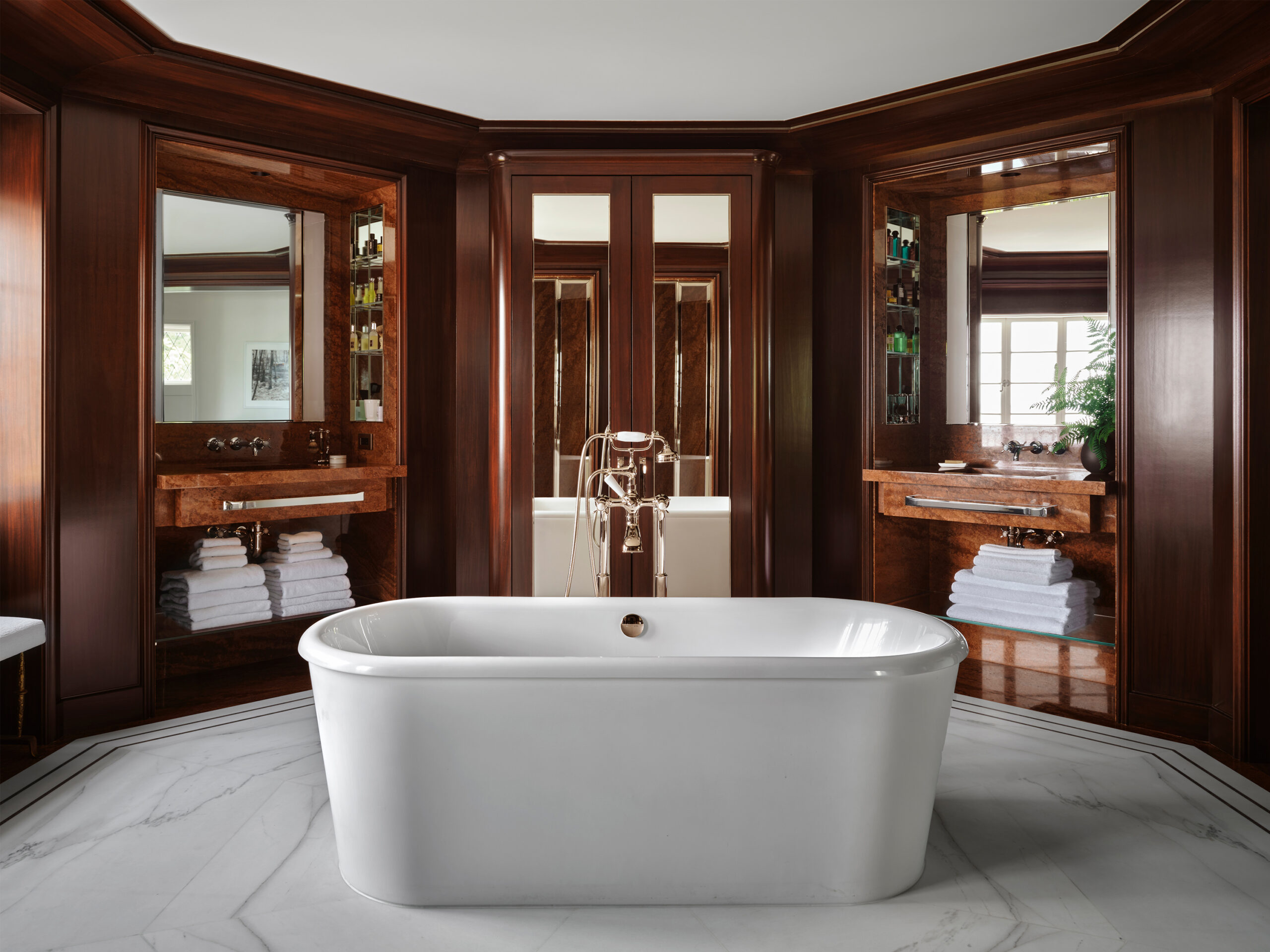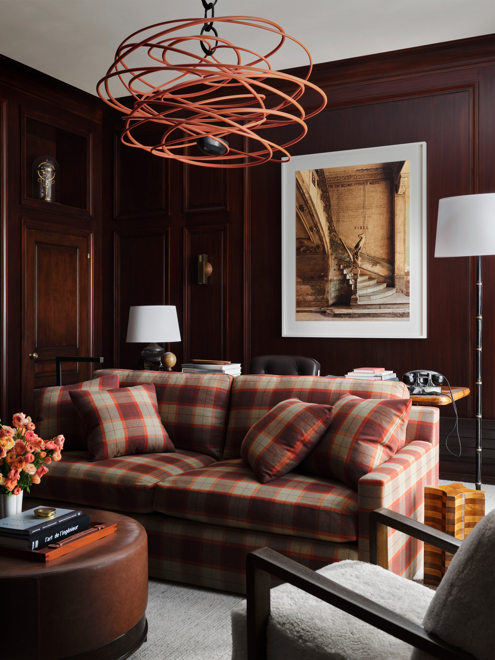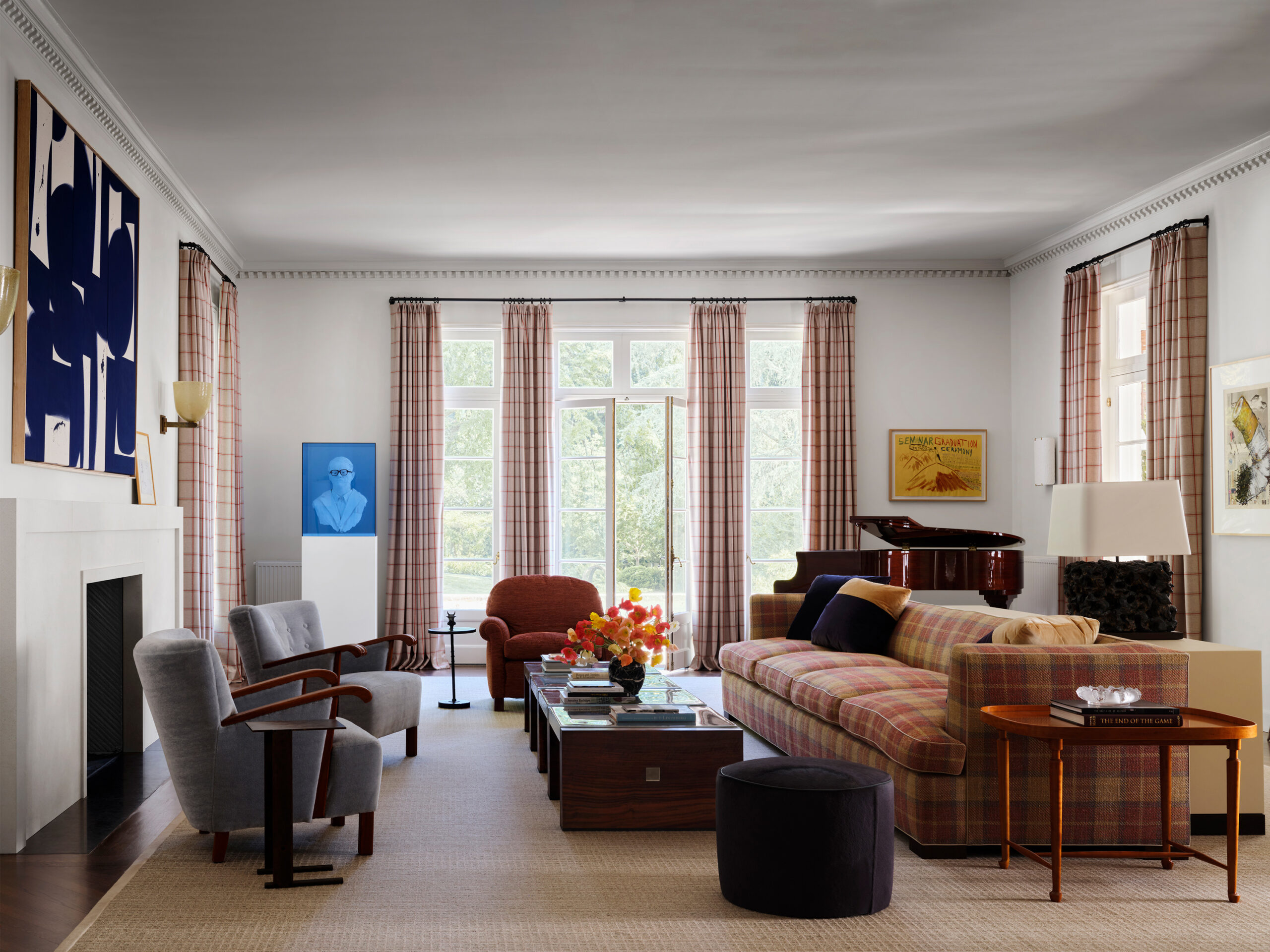 We renovated this historic two-acre Seattle estateoriginally designed by Harrie T. Lindeberg with ornamental gardens by the Olmsted Brothers by bringing together an eclectic mix of styles to play alongside the owners' extensive and vibrant art collection. Our design and curation creates a visually engaging and intentional space with elements ranging from a Brutalist-inspired mahogany sideboard